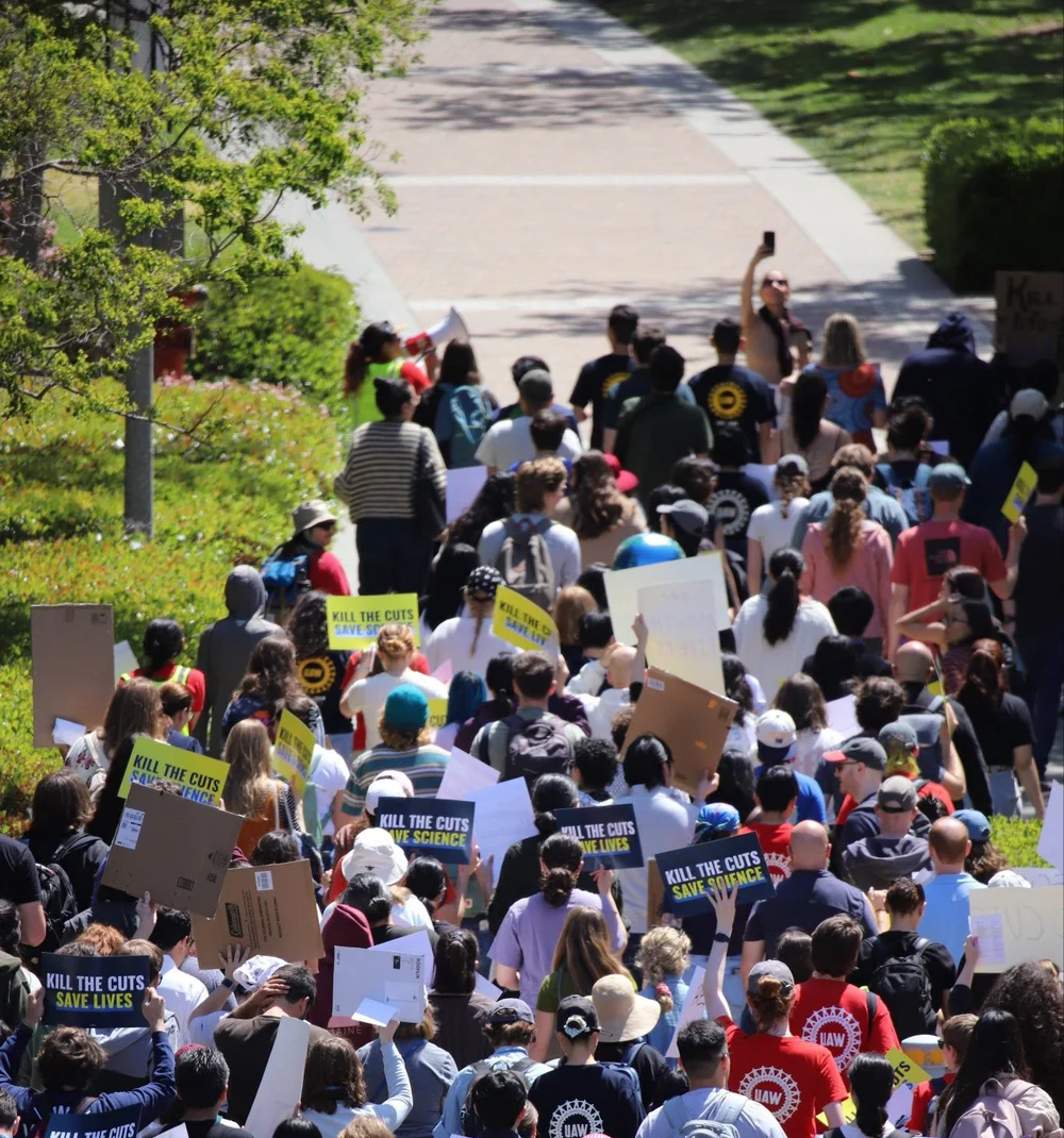 These cancellations have targeted health and science which runs contrary to reactionaries’ “MAHA” and climate denial narratives. At UC Irvine, the NSF grant which funded the Climate Justice Initiative (CJI)—a longstanding research project studying health effects of climate change and pollution on Southern California communities—was abruptly cut in 2025, resulting in the attempted layoff of eight UAW-represented researchers, which would have effectively ended the project. Because workers were able to fight through their union, these researchers were able to win their jobs back, and thus to continue this vital research. CJI demonstrates how the damage of these cuts extends even beyond research institutions, says Thi T., a Postdoctoral Scholar at UC Irvine and member of Orange County DSA who works on the project: “Our community partner organizations in OC broadly rely on a patchwork of their own federal grants that have gotten disrupted.”