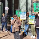 Boston, MA – Kickstarter Union (OPEIU Local 153) workers rallied on Thursday outside the 100 Oliver Street offices of Littler Mendelson, America’s largest union-busting firm, to launch their fourth week on strike. Employees from across the country, from Boston to New York City to Seattle, gathered to protest management’s choice to retain Littler Mendelson and press for an “honest, come to the table” negotiation.