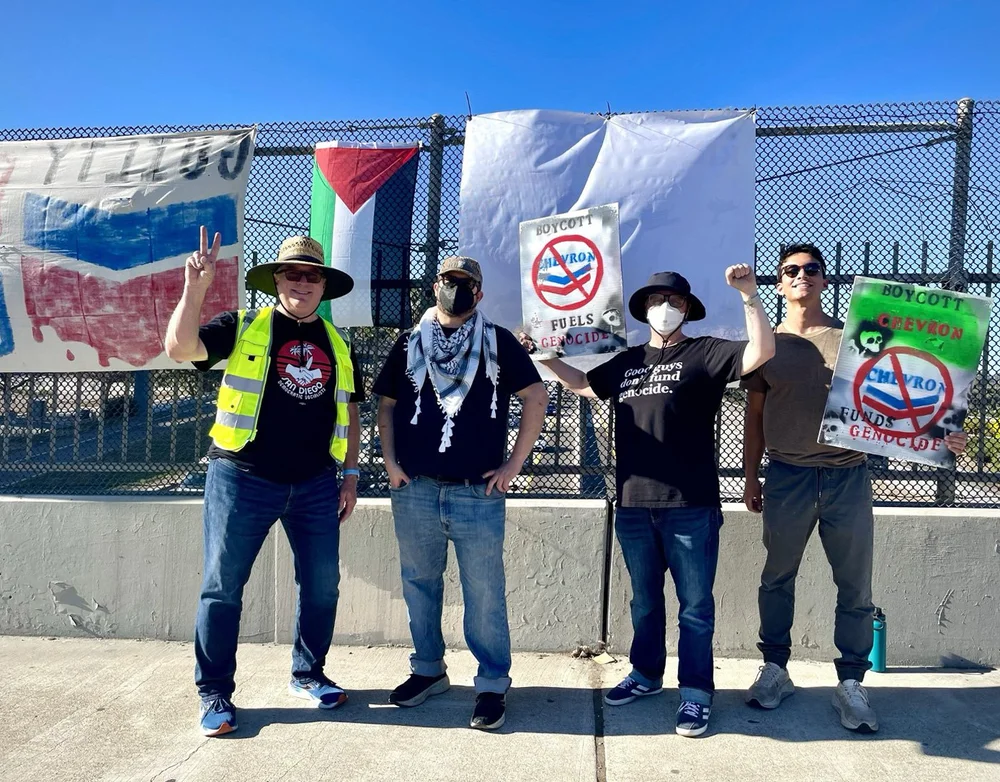 “The genocide in Gaza involves many actors,” said Tim Husarik, a San Diego DSA member. “Chevron is among the most complicit—profiting from destruction—so building support for boycott, divestment, and sanctions is essential in the imperial core.”