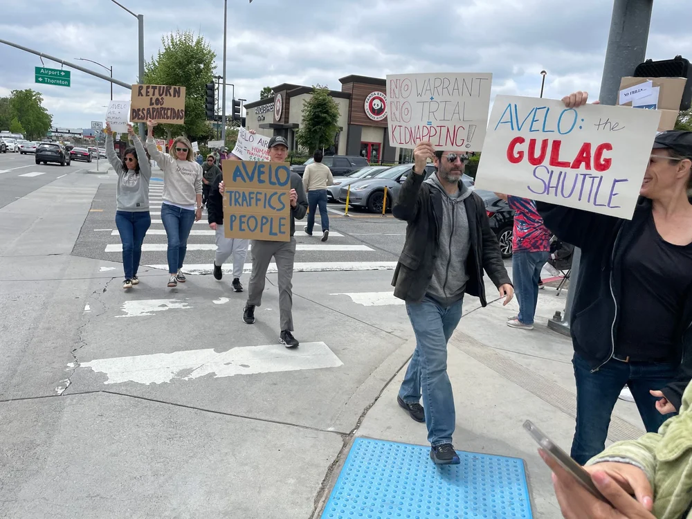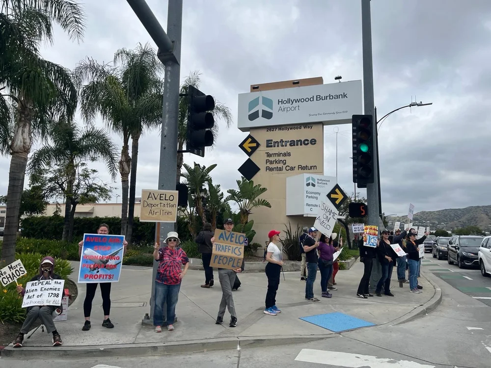 We knew after that second asteroid strike of an election that fascism was coming to our country, but it was still a shock to see it naked and brazen in our own neighborhoods. It was in early spring, as ridiculous displays of force and cruelty rounded up dozens of our neighbors, when DSA-LA members like me first heard about Avelo's ICE contract. Hollywood Burbank Airport was Avelo's largest West Coast hub. Burbank is a progressive, artsy town full of union stagehands and animators. Like everywhere else cool in America, it has become prohibitively expensive and has produced a robust community of tenant activists in response. It was in a Signal thread on this topic that I pitched my fellow activists, “Y’all, we have to protest against the fascist airline in our backyard.” Three other angry Burbankers agreed with me and we picked the following week for an action at the airport, putting out a general call to the community to stand against a company trying to profit from human rights abuses. We expected a modest turnout.